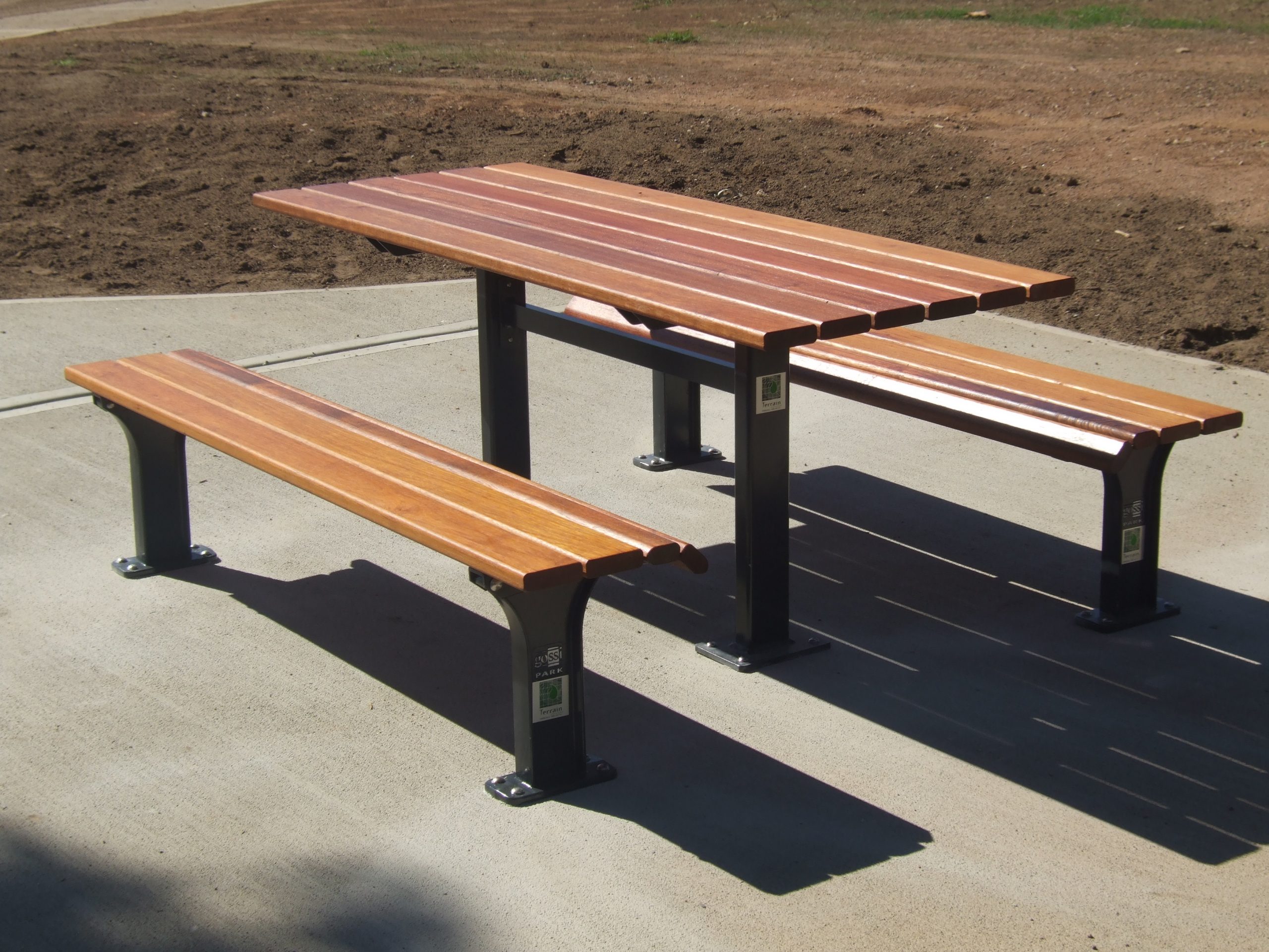 The Kuranda bench is manufactured using heavy duty, hardwood timber slats with powder coated die cast legs.