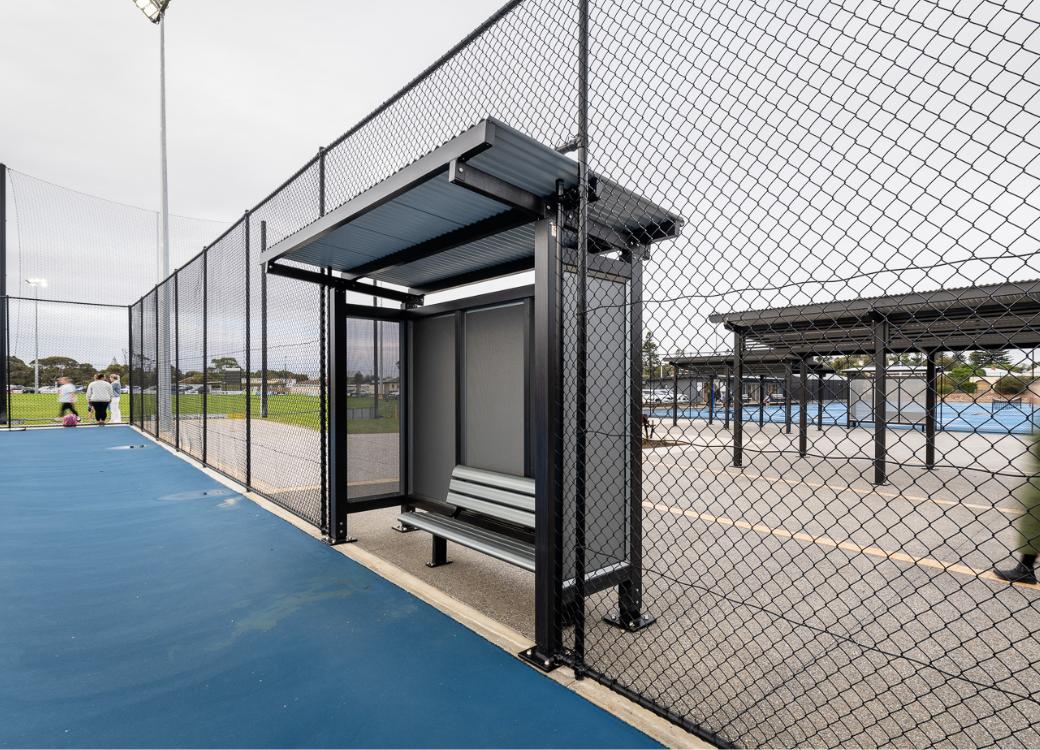 The Skillion Bus Shelter draws inspiration from its larger Skillion Shelter configuration, but adds side and rear screening, making it perfect for use as a bus shelter, or alongside sporting fields as player or spectator boxes.