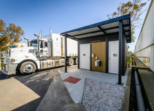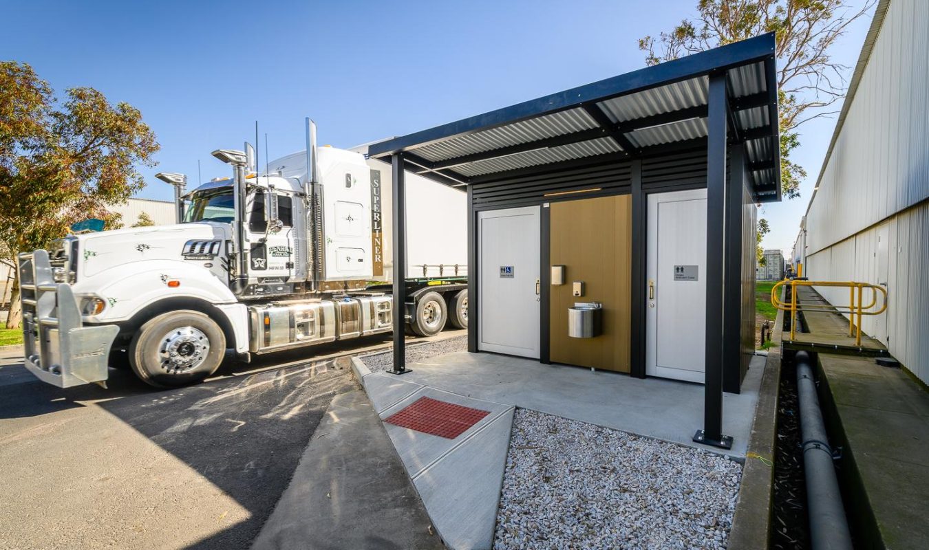 Located near a busy truck depot, the AMT101 two-door unit (WCC + 1 cubicle) provides essential facilities for drivers taking rest breaks.